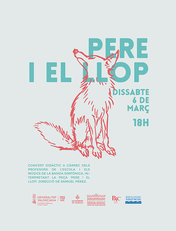 Sábado 6 de marzo a las 11:30h. Concierto a cargo de los profesores de la escuela y los músicos de la Banda Sinfónica, interpretando la pieza “Pedro y el lobo”. Dirección de Samuel Pérez.